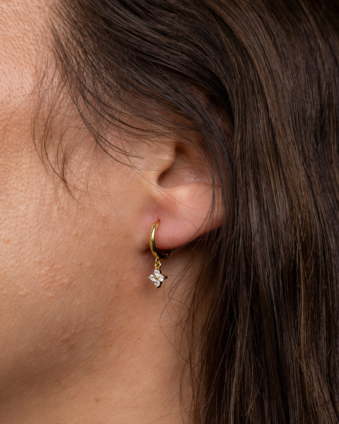 Crafted with 18ct gold-plated accents and adorned with a clear CZ stone, these earrings embody the grace and beauty of the ancient Greek goddess. With their intricate design, these earrings are a testament to timeless beauty and goddess-like allure.