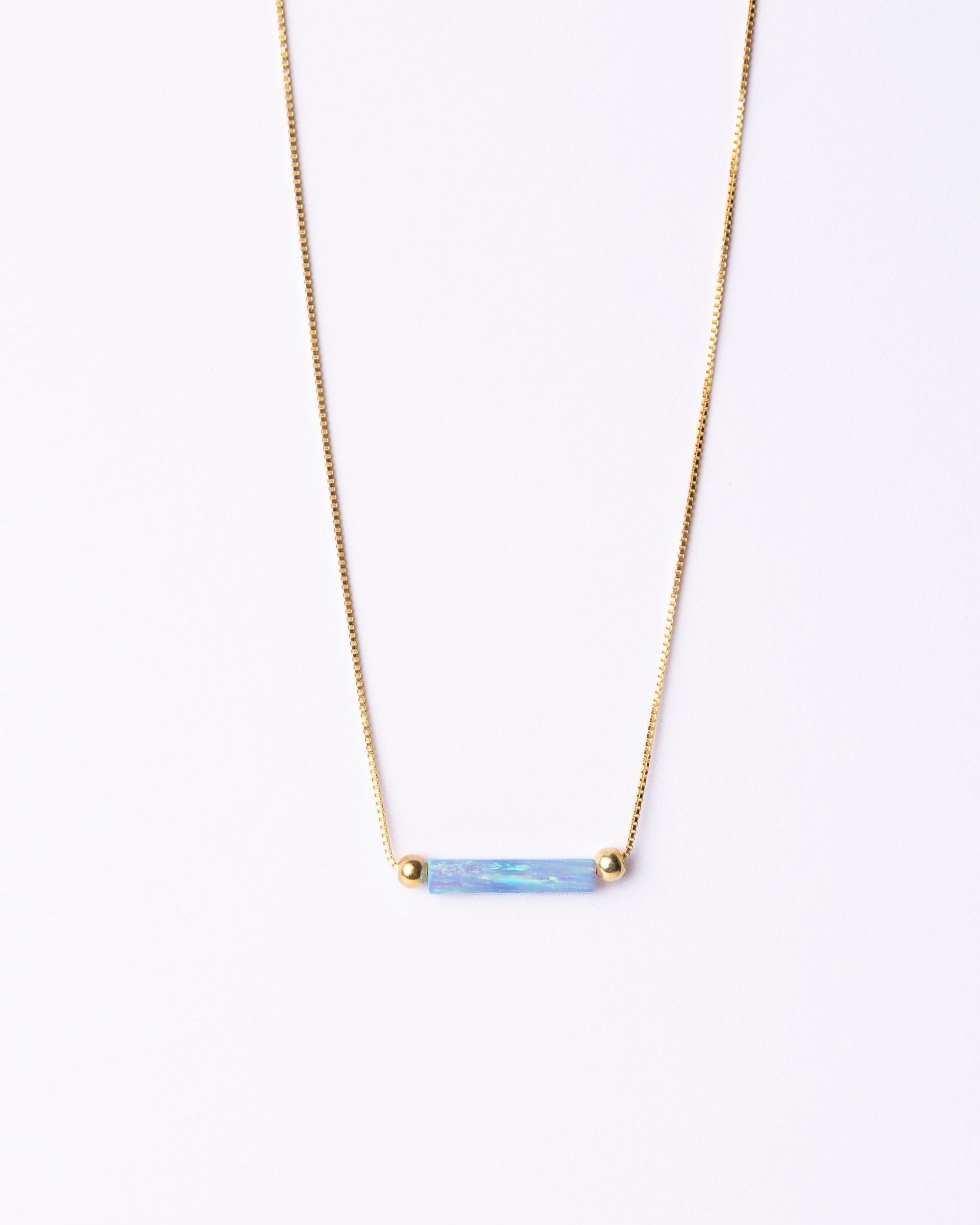 Illuminate your style with the Opalite Bar Necklace, featuring a delicate iridescent pendant that shimmers beautifully with every movement. Handcrafted for a unique touch, this piece is set on an adjustable chain for the perfect fit.