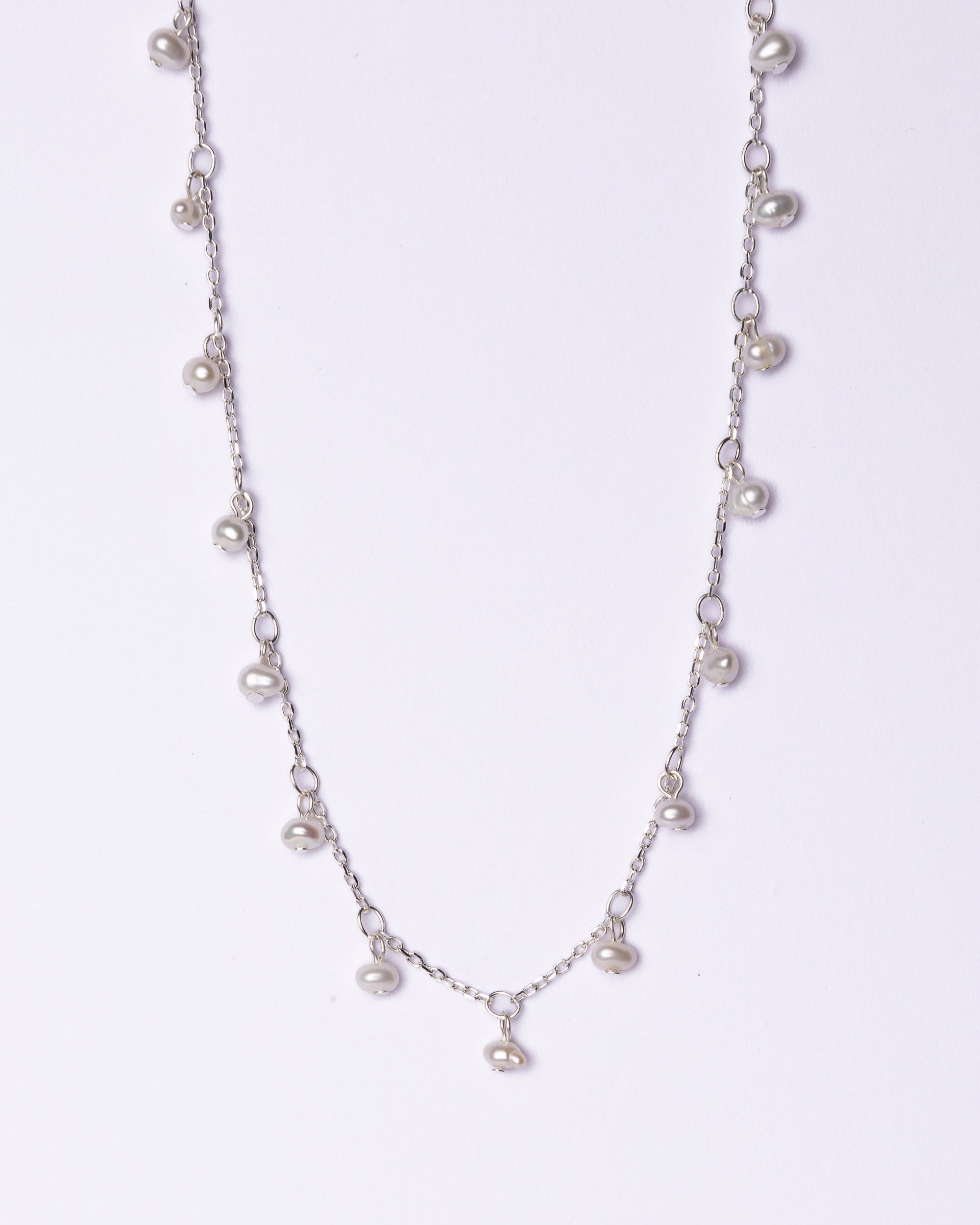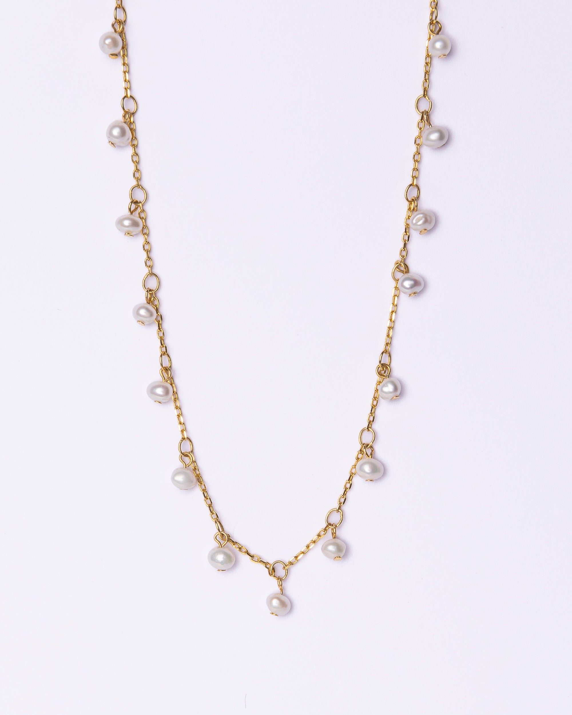 Delicate yet playful, the Pearl Confetti Necklace features lustrous pearls scattered along a fine chain for a modern, sophisticated look. Perfect for layering or wearing solo, this timeless piece adds a touch of elegance to any outfit.