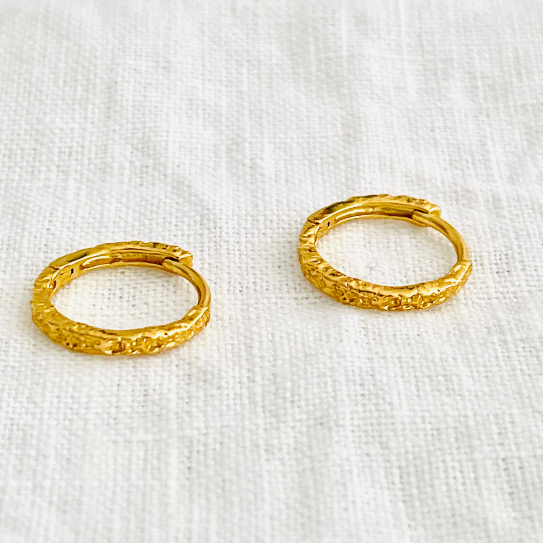 Indulge in the dreamy texture of our Dream Hoop Huggies Earrings, available in 12mm size and crafted in sterling silver or 19ct gold plated finish. These earrings feature a unique hammered texture, adding a touch of whimsy to your everyday look.