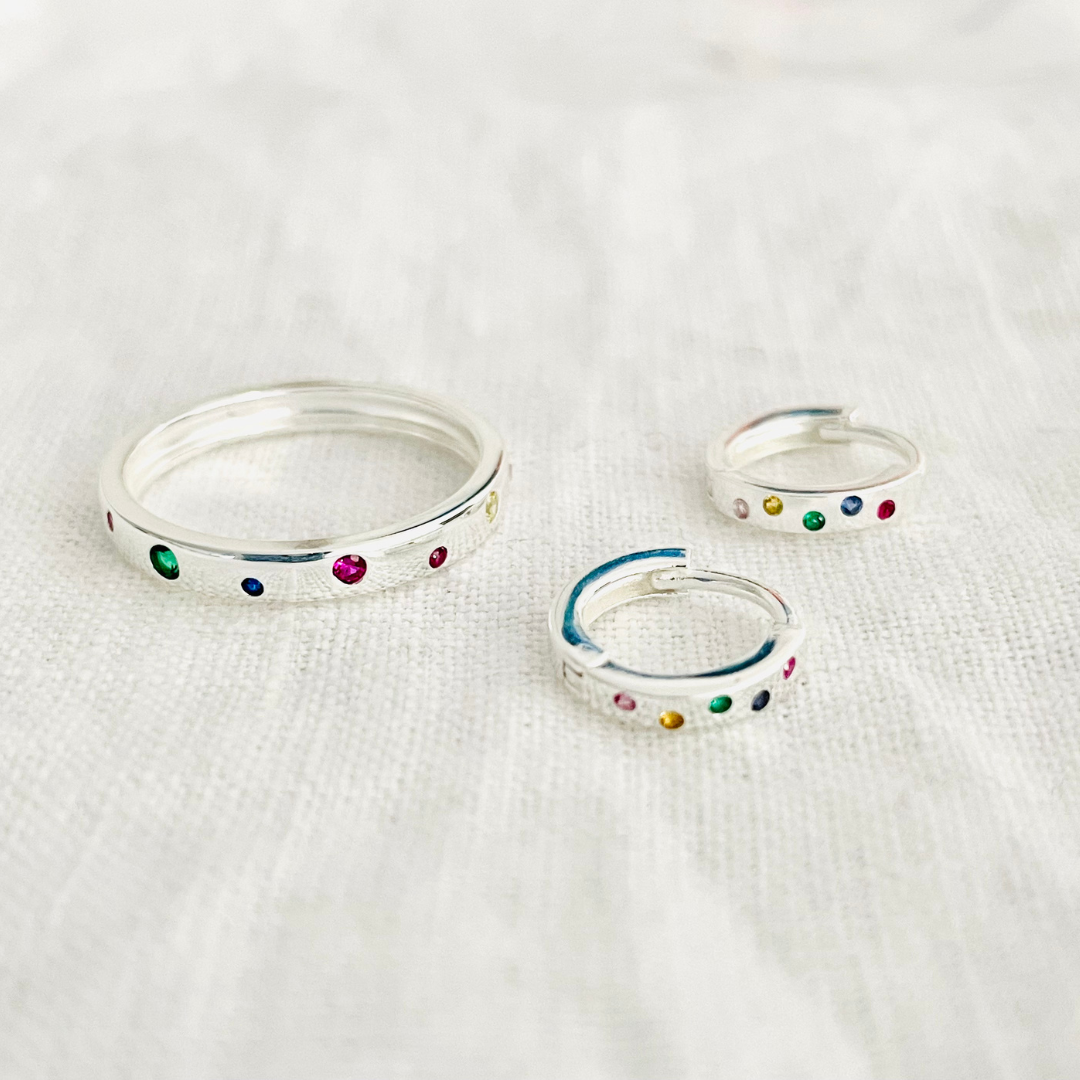 Our Enchanted Huggies are the ideal match to the Enchanted ring. Available in Sterling Silver these gorgeous earrings adorned with captivating coloured gemstones are sure to add a touch of magic and allure to any outfit.